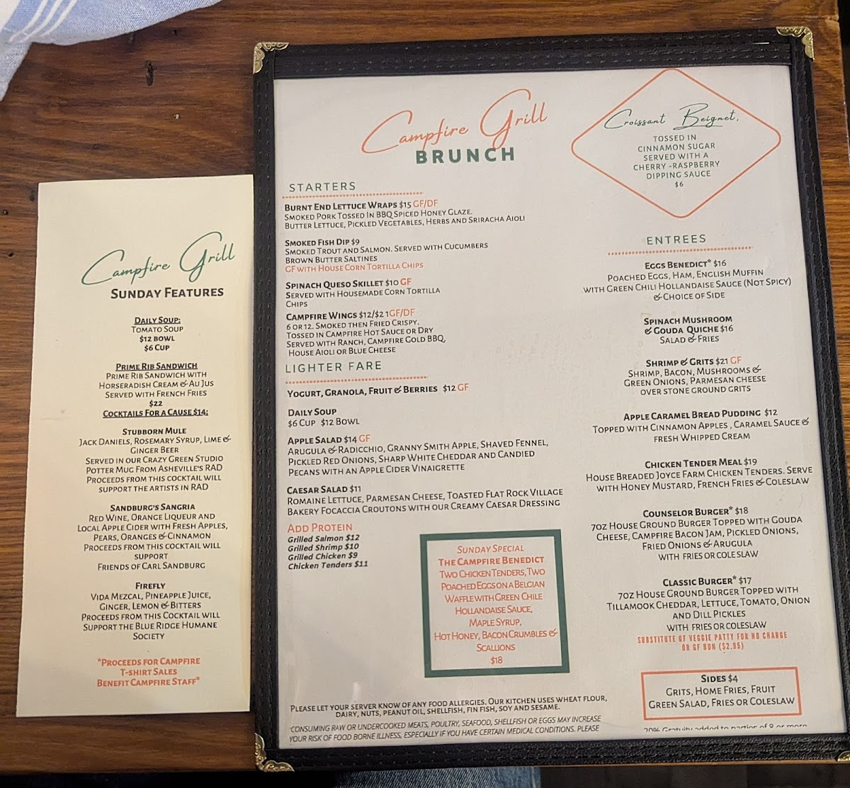 “ We got the special ‘Shrimp Chowder’ to share as an appetizer. Wow, it was so delicious and hearty. The restaurant is very close to the Carl Sandburg home. Tawnee had the classic burger and I had the curry chicken salad sandwich each with the rosemary fries. The rosemary fries were okay but not our favorite. The Carolina Sweet and ranch sauces for the fries were great. We enjoyed our sandwiches, but I probably would go for a burger instead of the curry chicken. We would eat here again especially for the shrimp chowder. We had great service from Cathy. ”