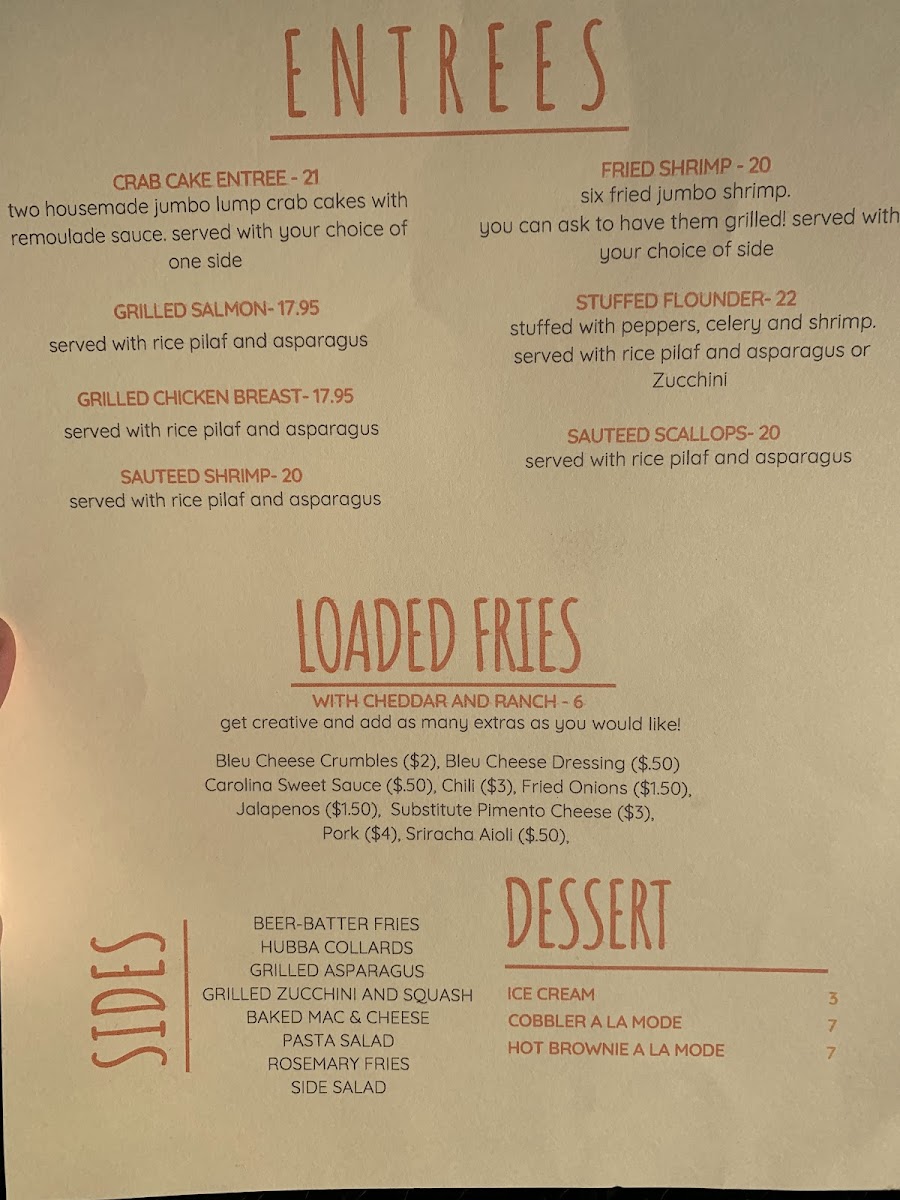Looking for standout flavors? The wood-fired half chicken, as praised by diners like Steven, is not to be missed. It's paired beautifully with creamy mashed potatoes and vibrant mixed vegetables, making it a hearty yet refined choice. For those craving something a little lighter, options like the crab hush puppies serve as a delightful appetizer, setting the stage for an unforgettable meal.
